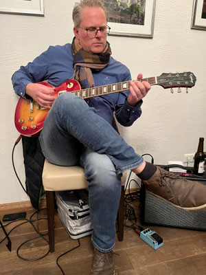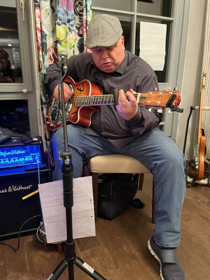 Akustic vs. Elektro: sie ergänzten sich bestens und bescherten den Gästen im Café Q einen ganz besonderen Abend mit überwiegend Eigenkompositionen und einigen Springsteen-Covers, mit nachdenkliche Songs und Schmissigkeiten. Robert Oberbeck, nun bereits zum fünften mal in Niederdieten, diesmal gekonnt ergänzt durch Slowhand-Dennis Wutzke.