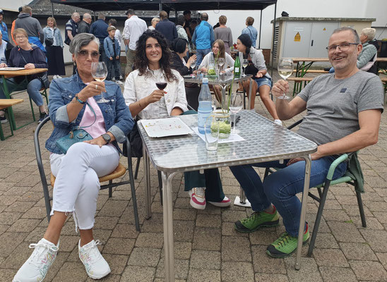 Der Mut begann schon zu sinken, als deutlich wurde, dass unser geliebtes Weinfest wohl erstmals unter drohenden Regenwolken stattfinden würde. Da hieß es, noch schnell Pavillons aufbauen und hoffen, dass sich nicht allzuviele Gäste würden abschrecken lassen.